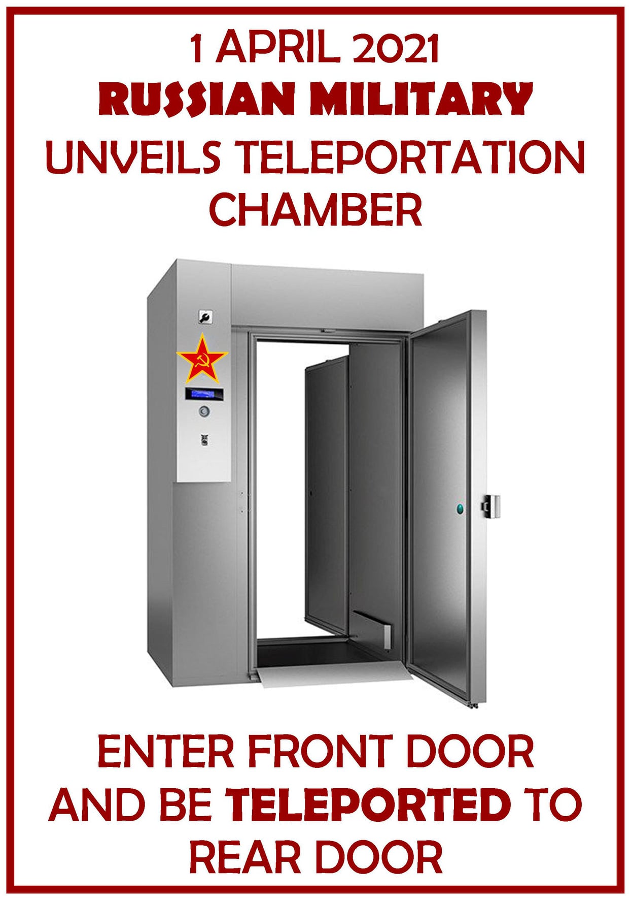 MOSCOW: Russian military officials, after months of testing, have unveiled their newly developed teleportation chamber. Although the teleportation has limited range, during testing it has been highly effective in reducing injuries to older women. When placed over a crack in a sidewalk, the soldiers don’t step on the crack and break their mother’s back. A.F.