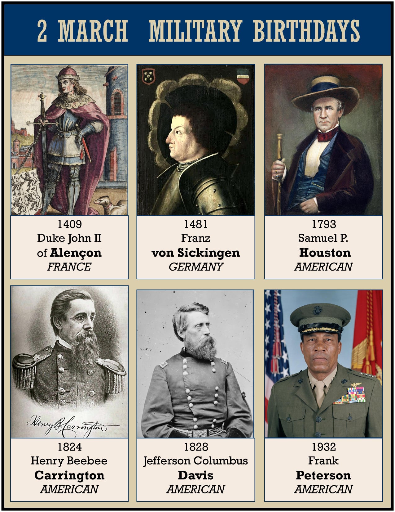 1824 Henry Beebee Carrington was a lawyer, professor, prolific author, and an officer in the United States Army during the American Civil War and in the Old West during Red Cloud’s War. A noted engineer, he constructed a series of forts to protect the Bozeman Trail, but suffered a major defeat at the hands of the warchief Red Cloud.