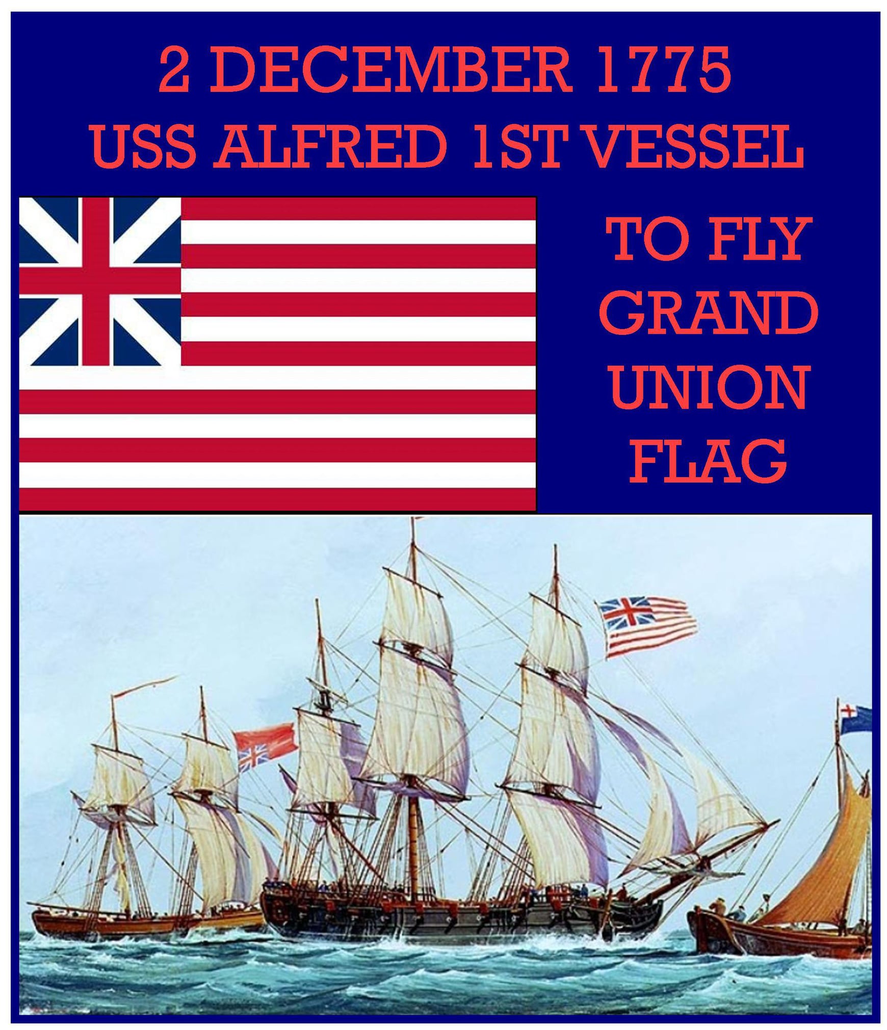 1775 – The USS Alfred becomes the first vessel to fly the Grand Union Flag (the precursor to the Stars and Stripes); the flag is hoisted by John Paul Jones. rochestermilitary.com