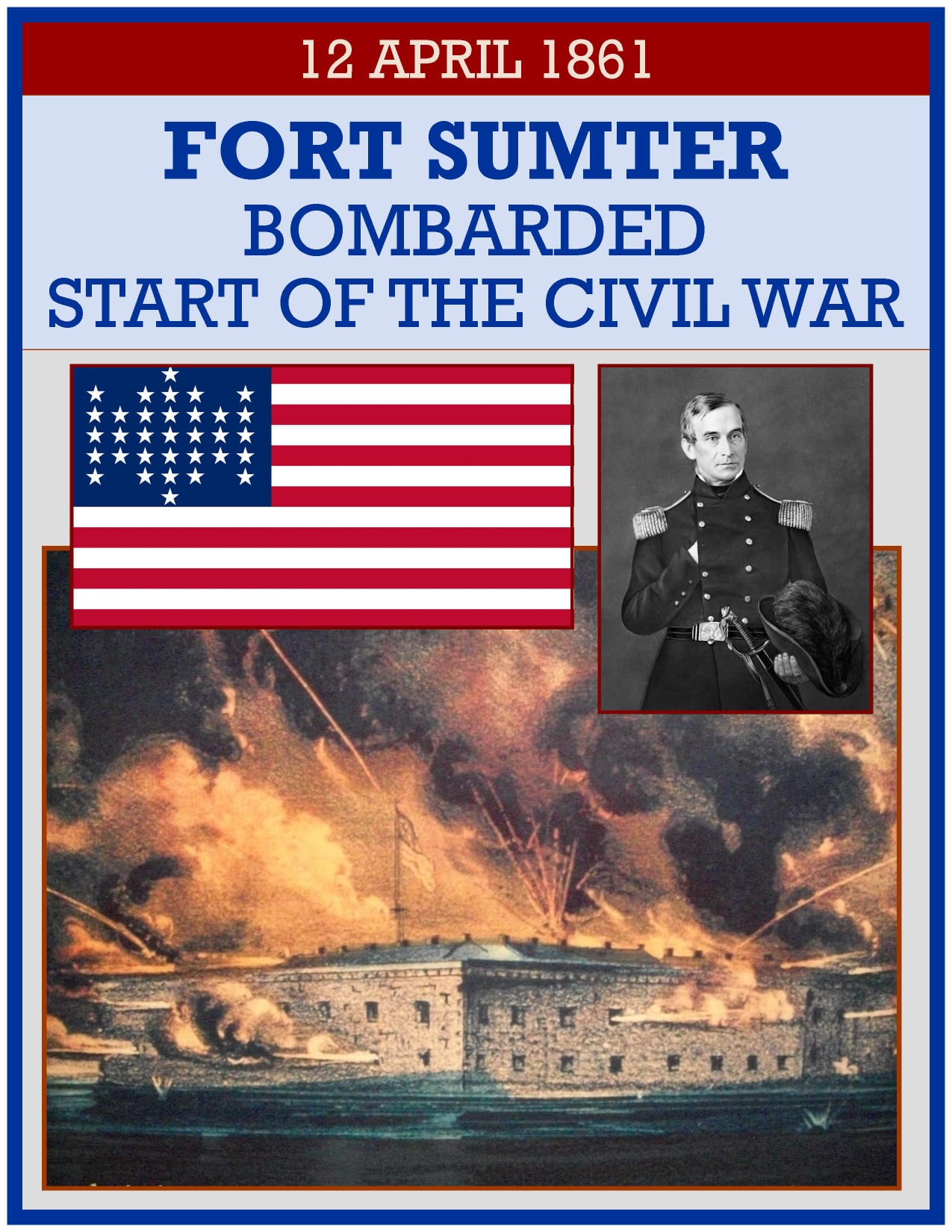 1861 â The American Civil War begins when Confederates fire on Fort Sumter in Charleston Harbor. The fort had been the source of tension between the Union and Confederacy for several months. After South Carolina seceded, the state demanded the fort be turned over but Union officials refused. A supply ship, the âStar of the West,â tried to reach Fort Sumter on January 9, but the shore batteries opened fire and drove it away. For both sides, Sumter was a symbol of sovereignty. The Union could not allow it to fall to the Confederates, although throughout the Deep South other federal installations had been seized. For South Carolinians, secession meant little if the Yankees still held the stronghold. The issue hung in the air when Abraham Lincoln took the oath of office on March 4, stating in his inauguration address: âYou can have no conflict without being yourselves the aggressors.â Lincoln did not try to send reinforcements but he did send in food. This way, Lincoln could characterize the operation as a humanitarian mission, bringing, in his words, âfood for hungry men.â He sent word to the Confederates in Charleston of his intentions on April 6. The Confederate Congress at Montgomery, Alabama, had decided on February 15 that Sumter and other forts must be acquired âeither by negotiation or force.â Negotiation, it seemed, had failed. The Confederates demanded surrender of the fort, but Major Robert Anderson, commander of Fort Sumter, refused. At 4:30 a.m. on April 12, the Confederate guns opened fire. For thirty-three hours, the shore batteries lobbed 4,000 shells in the direction of the fort. Finally, the garrison inside the battered fort raised the white flag. No one on either side had been killed, although two Union soldiers died when the departing soldiers fired a gun salute, and some cartridges exploded prematurely. It was a nearly bloodless beginning to Americaâs bloodiest war.