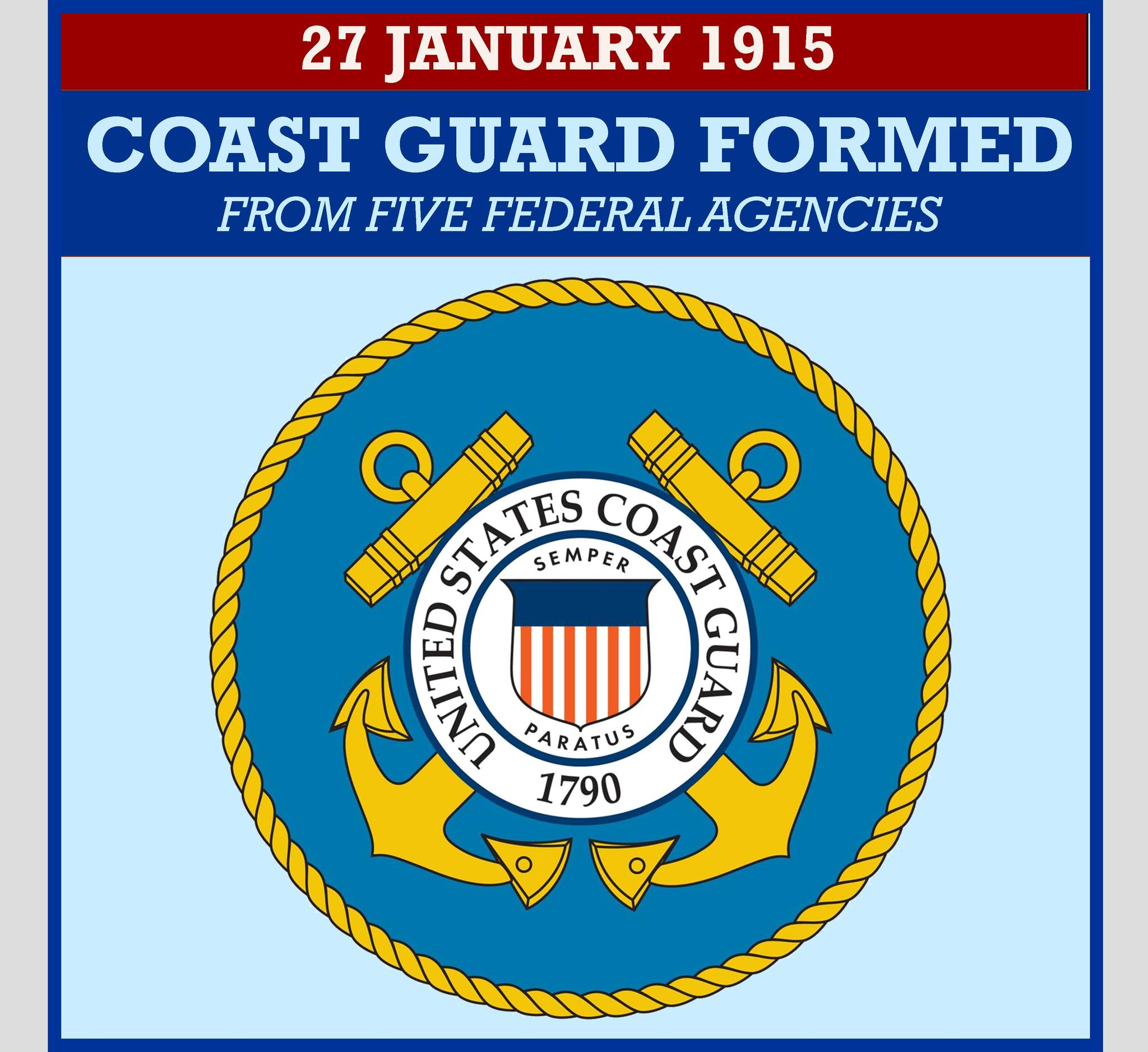 1915 â President Woodrow Wilson signed into law the âAct to Create the Coast Guard,â an act passed by Congress on 20 January 1915 to form the Coast Guard (38 Stat. L., 800). The Coast Guard, however, still considers the date of the founding of the Revenue Cutter Service, 4 August 1790, as its âofficialâ birthday, even though the Lighthouse Service, absorbed in 1939, is even older than that, dating to 7 August 1789. The Coast Guard is the amalgamation of five Federal agencies. These agencies, the Revenue Cutter Service, the Lighthouse Service, the Steamboat Inspection Service, the Bureau of Navigation, and the Lifesaving Service, were originally independent, but had overlapping authorities and were shuffled around the government. They sometimes received new names, and they were all finally united under the umbrella of the Coast Guard. The multiple missions and responsibilities of the modern Service are directly tied to this diverse heritage and the magnificent achievements of all of these agencies.