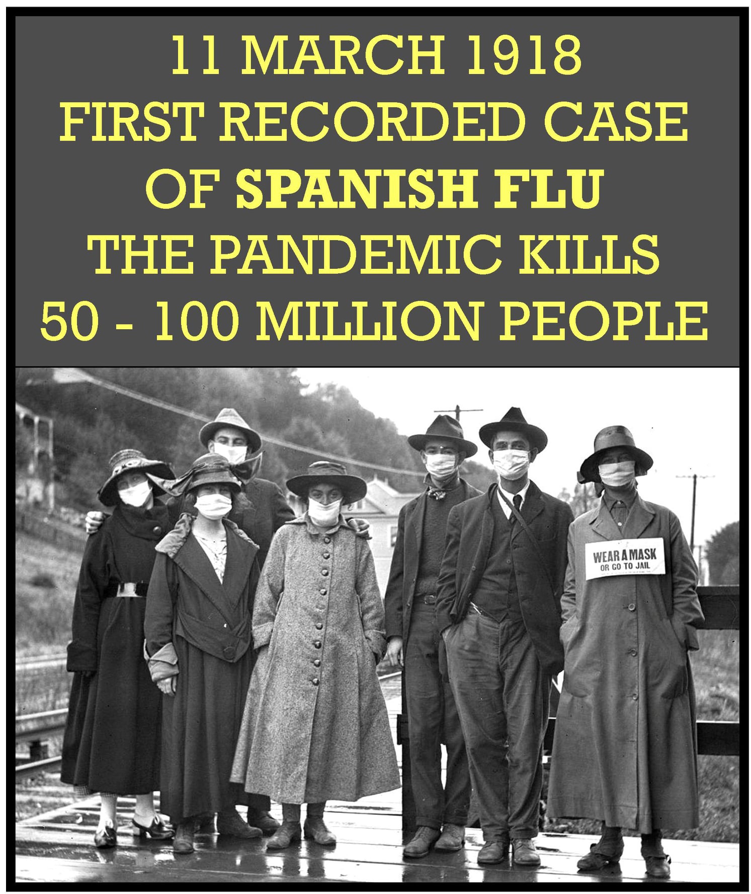 1918 US Army mess cook Private Albert Gitchell of Fort Riley, Kansas becomes the first documented case of Spanish flu. The 1918 influenza pandemic was the most severe pandemic in recent history. It was caused by an H1N1 virus with genes of avian origin. Although there is not universal consensus regarding where the virus originated, it spread worldwide during 1918-1919. In the United States, it was first identified in military personnel in spring 1918. It is estimated that about 500 million people or one-third of the world’s population became infected with this virus. The number of deaths was estimated to be 50 – 100 million worldwide with about 675,000 occurring in the United States.