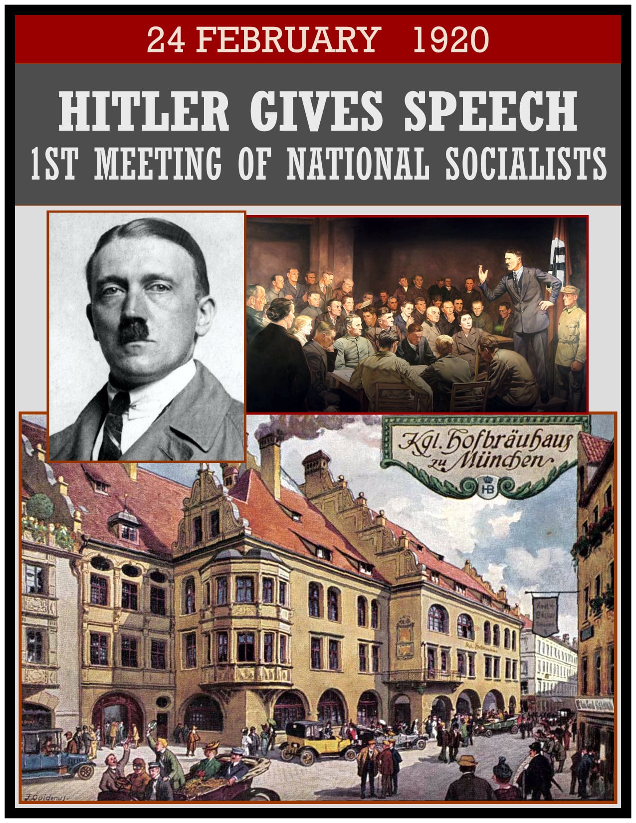 1920 – A fledgling German political party held its first meeting of importance at Hofbrauhaus in Munich; it became known as the Nazi Party, and its chief spokesman was Adolf Hitler. He delivered the Nazi Party Platform to a large crowd in Munich, an event that is often regarded as the foundation of Naziism.
