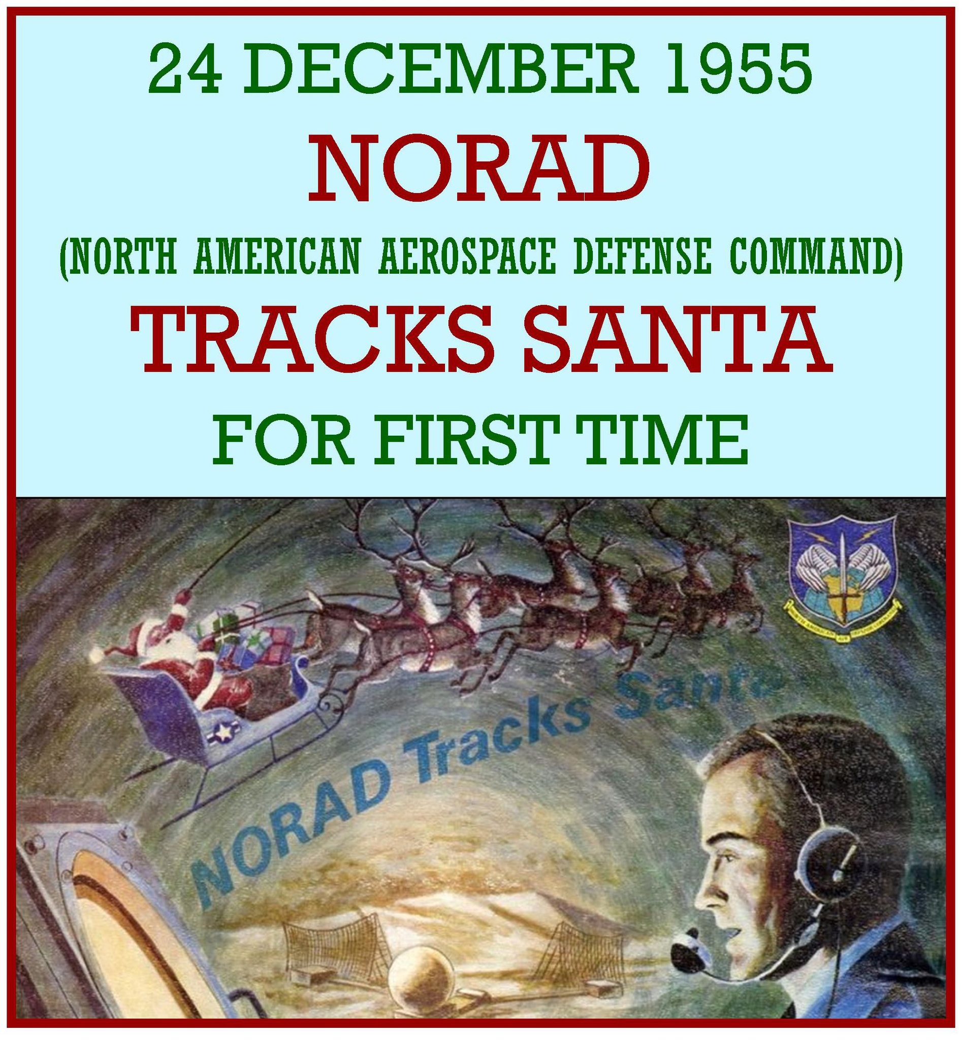 1955 â NORAD Tracks Santa for the first time in what will become an annual Christmas Eve tradition. The program began in 1955, when a Sears department store placed an advertisement in a Colorado Springs newspaper which told children that they could telephone Santa Claus and included a number for them to call. However, the telephone number printed was misprinted and calls instead came through to Colorado Springsâ Continental Air Defense Command (CONAD) Center. Colonel Harry Shoup, who was on duty that night, told his staff to give all children who called in a âcurrent locationâ for Santa Claus. A tradition began which continued when the North American Aerospace Defense Command (NORAD) replaced CONAD in 1958. Today, NORAD relies on volunteers to make the program possible. Each volunteer handles about forty telephone calls per hour, and the team typically handles more than 12,000 e-mails and more than 70,000 telephone calls from more than two hundred countries and territories. Most of these contacts happen during the twenty-five hours from 2 a.m. on December 24 until 3 a.m. MST on December 25. Volunteers include NORAD military and civilian personnel.