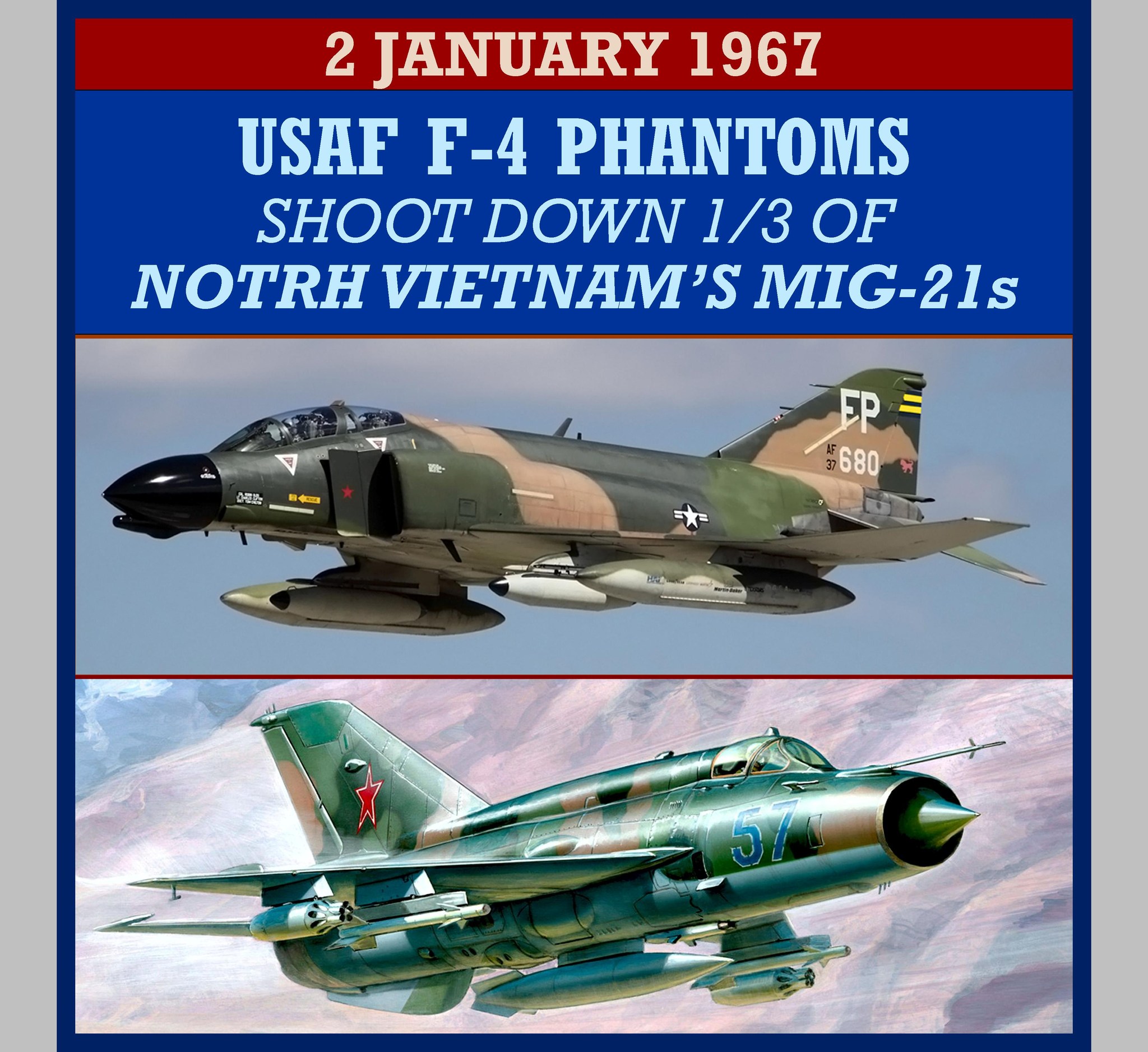 1967 â Operation Bolo: 30 US Air Force F-4 Phantom jets, operating from Ubon in Thailand, shoot down a third of North Vietnamâs MiG-21s, loosing only one Phantom. Over the previous two years of Air Force and Navy air strikes, only 10 planes had been lost to enemy MiGs. American pilots were forbidden from attacking Hanoiâs airfields fearing that killing Soviet or Chinese advisers that could be there would draw those nations more directly into the war. Knowing this, the Vietnamese Peopleâs Air Force would simply fly their MiGs through the American bombing formations and loiter just long enough to get the crews to drop their bombs and extra fuel early, preventing the strategic strikes without firing a shot. US 7th Air Force selected Colonel Robin Olds to lead an ambush to stop the harassment. To lure out the North Vietnamese, American F-4s would fly the same routes into the country as the heavyset F-105 bombersâand at the same altitudes and speeds while using the same radio call signs. Meanwhile, signal-snooping aircraft would keep track of the MiGs. Special C-130B-IIs would listen in on enemy radio chatter and feed information straight to American pilots throughout the mission. These specialized aircraft and personnel not only made sure the Vietnamese were responding as expected, but also kept watch in case Chinese jets decided to join the battle. Olds wanted to know if Russian or North Korean advisers were actually in the cockpits when the fighting started. Hanoiâs pilots were caught completely off guard. When Oldsâ strike team started its attack, the C-130s picked up enemy pilots shocked to find that âthe sky is full of F-4s,â according to the declassified report. âWhere are the F-105s? You briefed us to expect F-105s!â Seven MiGs were shot down. After a series of additional aerial ambushes, the Vietnamese Peopleâs Air Force grounded its MiGs and completely revised its procedures. At the end of the year, Washington approved strikes on Hanoiâs air bases. During this operation, Col. Robin Olds shot down one of the MiGs, becoming the first and only U.S. Air Force ace with victories in both World War II and Vietnam.