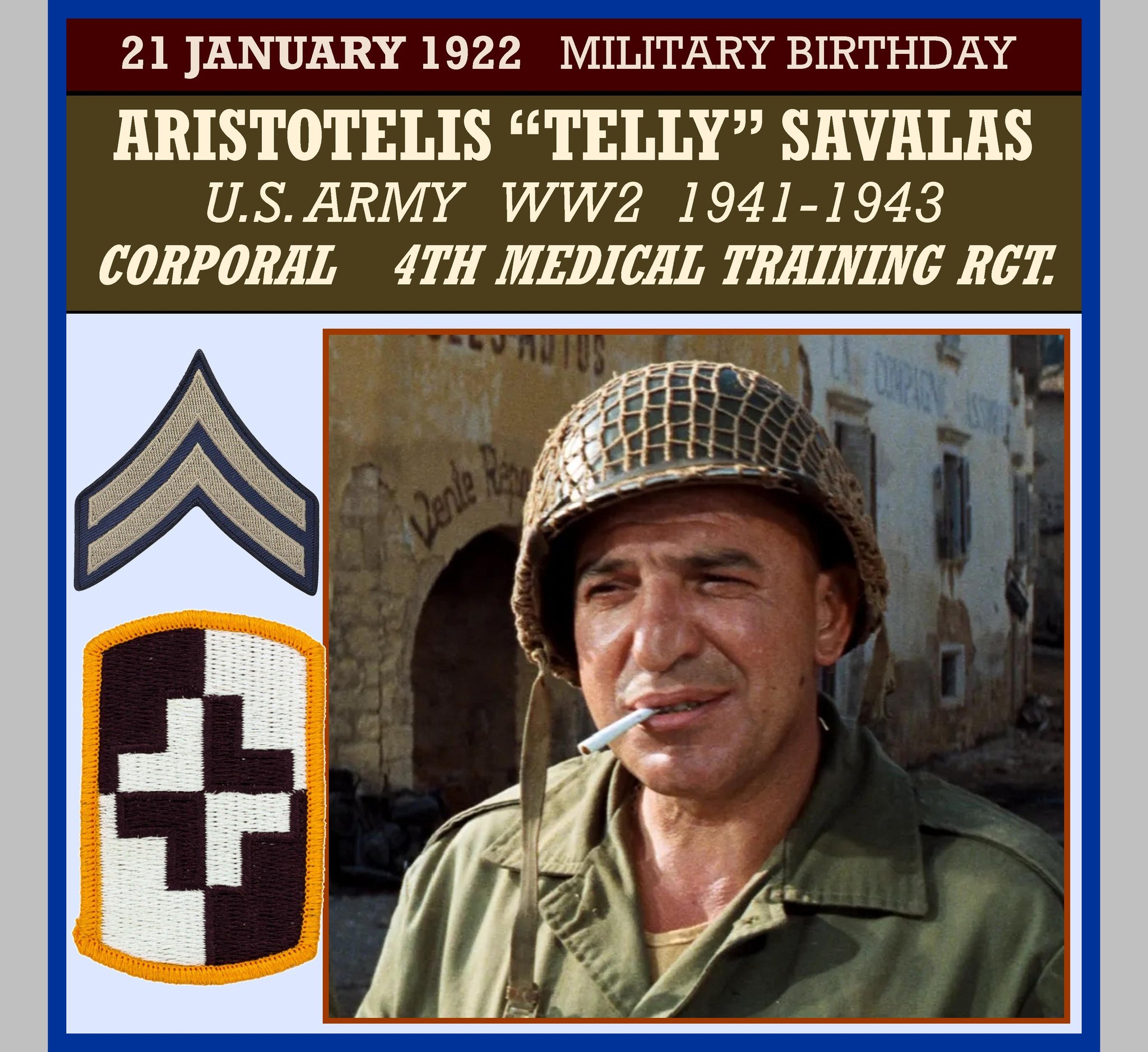 Aristotelis Savalas was born on January 21, 1922 in Garden City, New York, the son of Greek immigrants. In 1941, he joined the army and served in World War II, from which he was discharged in 1943 with a Purple Heart disability. After his release, Savalas attended the Armed Forces Institute where he studied radio and television production. He went on to enroll at Columbia University where he continued his studies in psychology. During the early 1950s, Telly worked for ABC radio as host of the Voice of America.