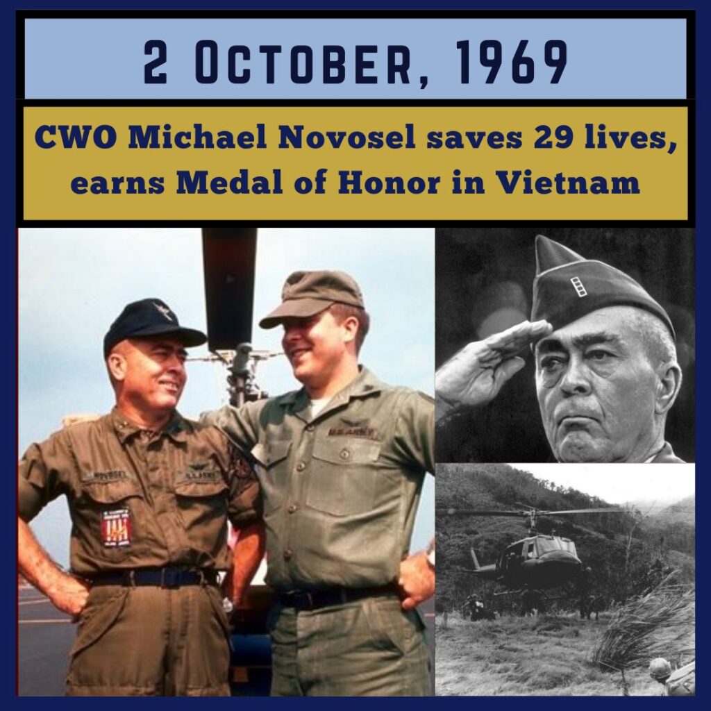 On October 2, 1969, Chief Warrant Officer Michael Novosel, a Vietnam War Dustoff pilot, made repeated trips without air cover