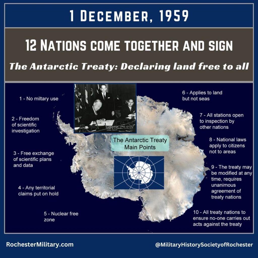 #OnThisDay 1 December 1959, Twelve nations, including the United States and the Soviet Union, signed the Antarctica Treaty, which banned