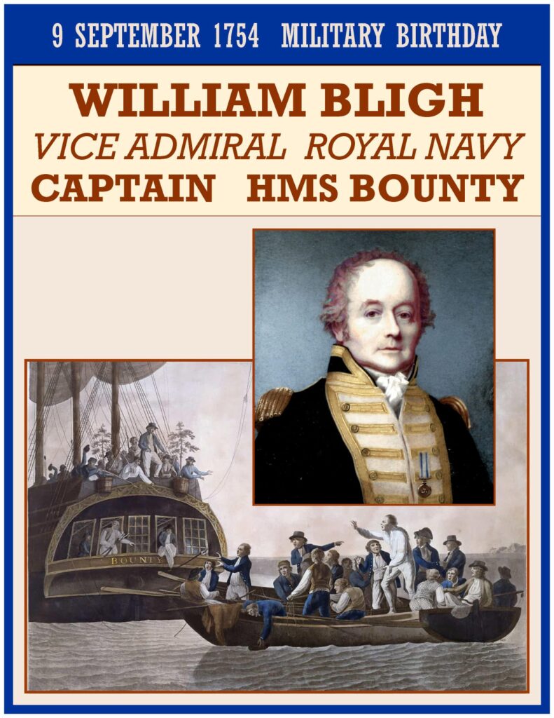 Vice-Admiral William Bligh FRS (9 September 1754 â 7 December 1817) was an officer of the Royal Navy and a