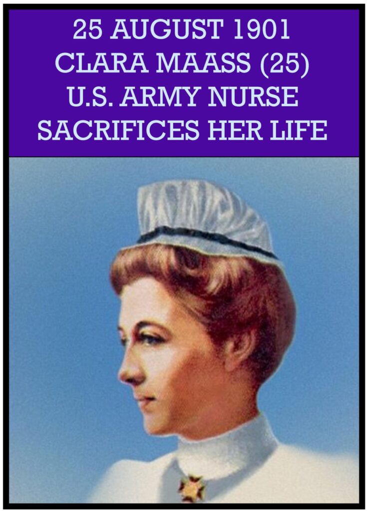 1901 â Clara Maass (25), army nurse, sacrificed her life to prove that the mosquito carries yellow fever. Clara Louise […]