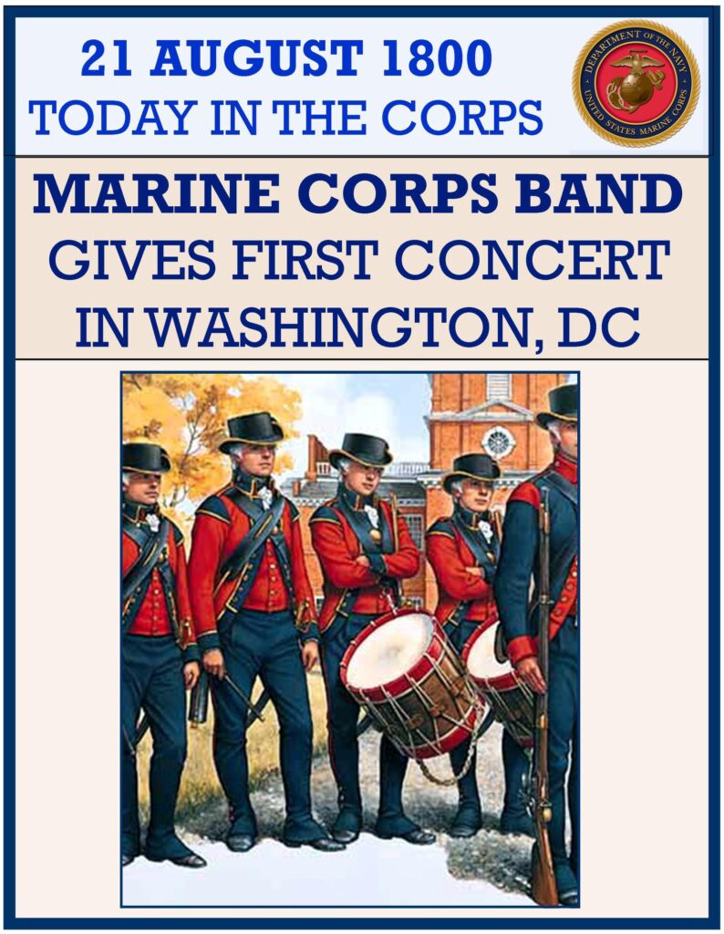 The U.S. Marine Corps Band gave its first concert in Washington D.C. on August 21, 1800. The Marine Band did