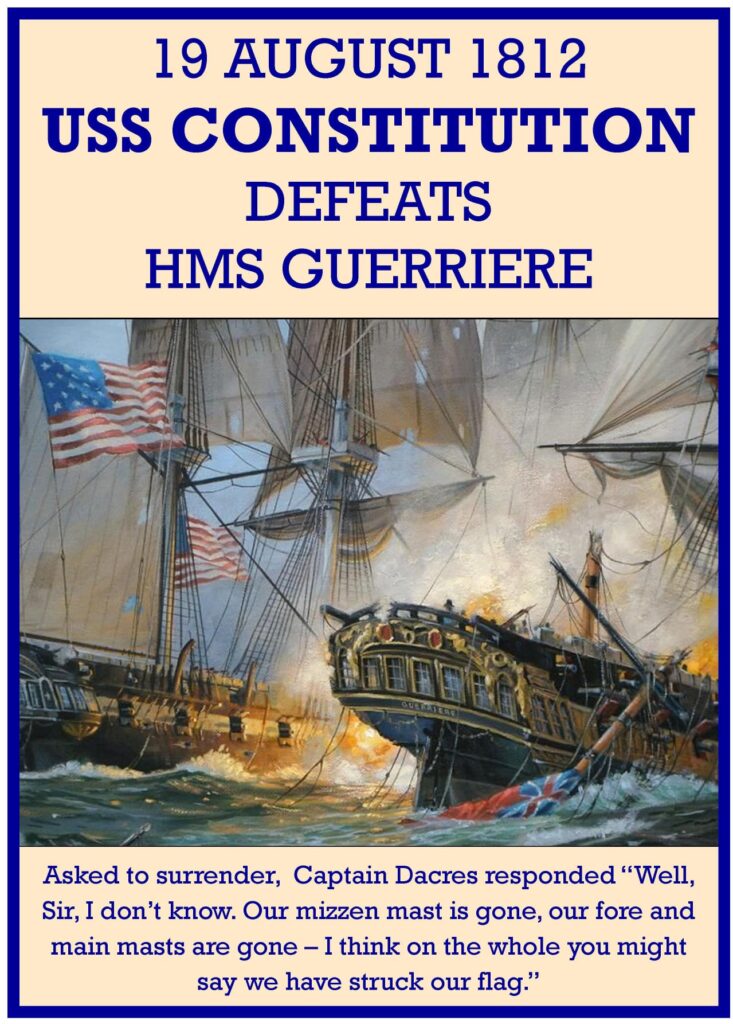 August 1812 â The USS Constitution vs HMS Guerriere, was a single ship action during the War of 1812, approximately