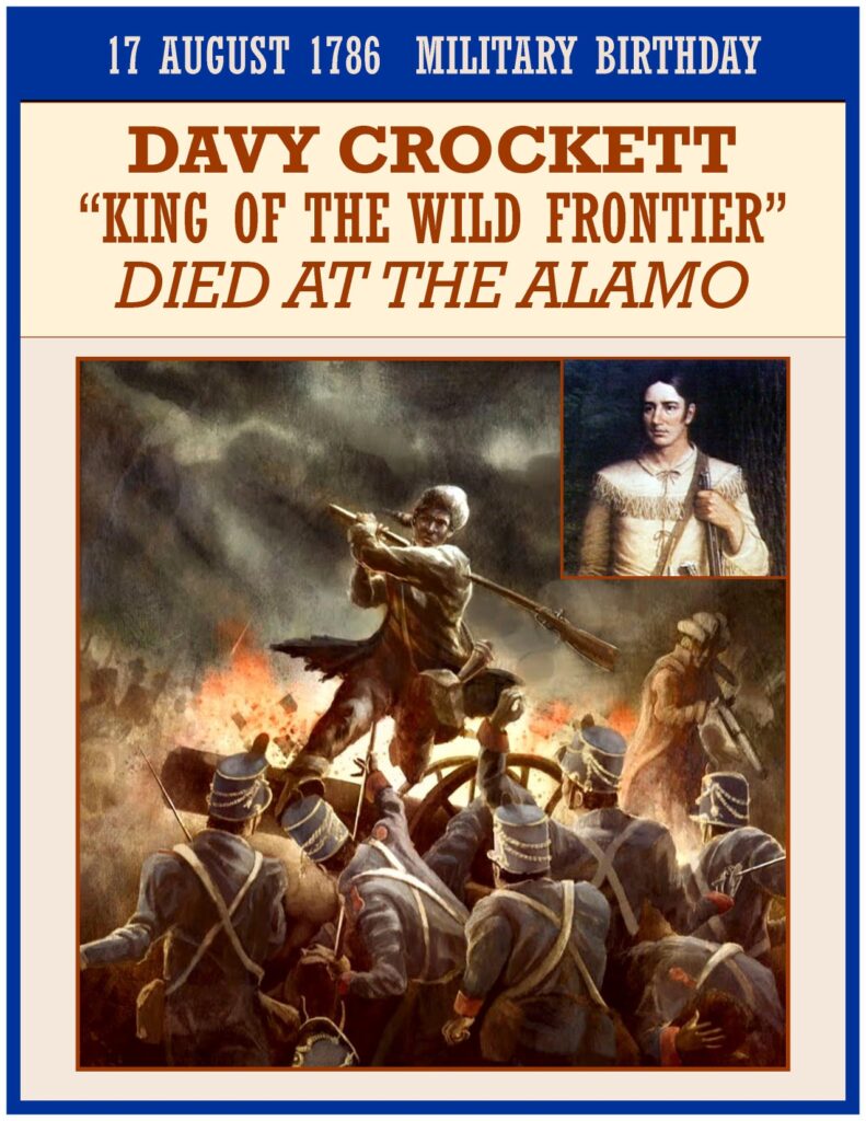 David Crockett (August 17, 1786 â March 6, 1836) was an American folk hero, frontiersman, soldier, and politician. He is