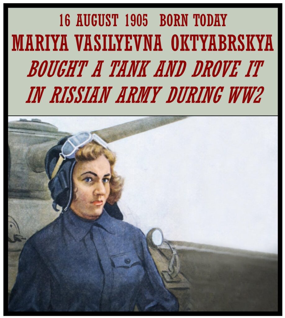Mariya Vasilyevna Oktyabrskaya (16 August 1905 â 15 March 1944) Soviet tank driver. What would you do to avenge your