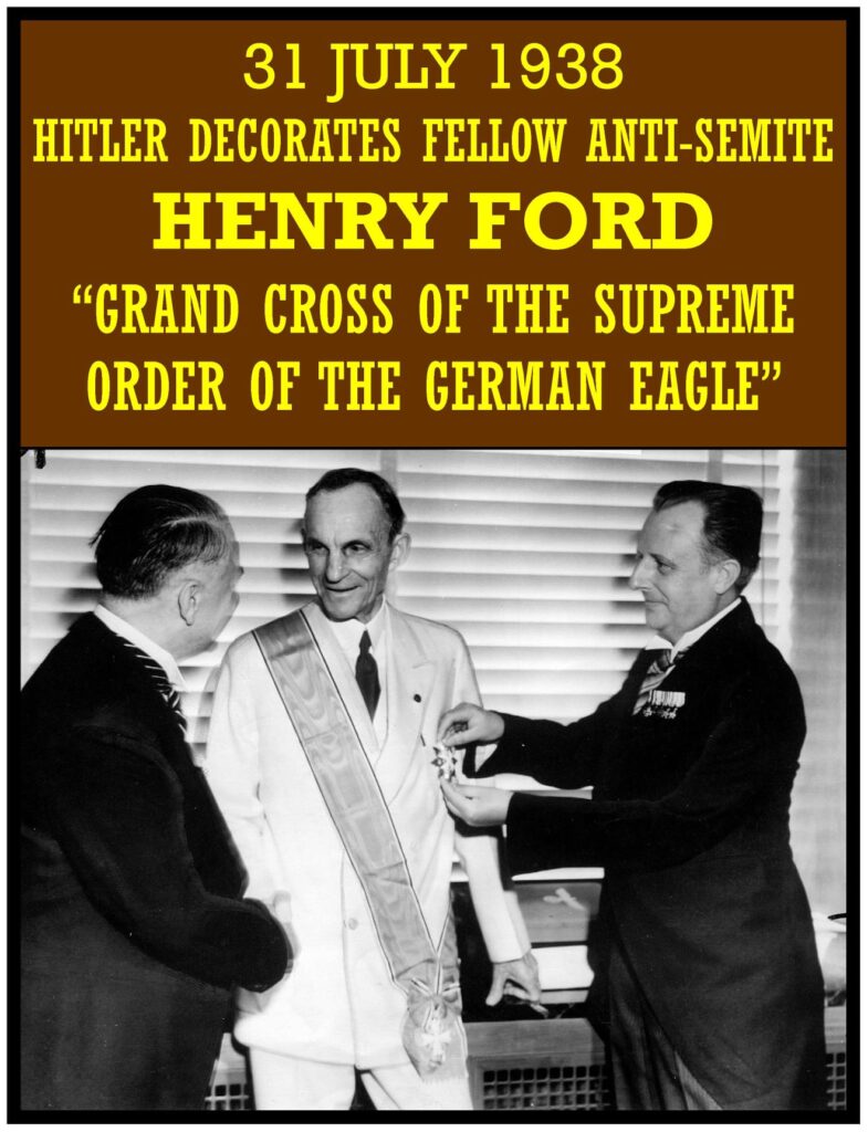 At a ceremony in Dearborn, Michigan, Henry Ford is presented with the Grand Cross of the Supreme Order of the