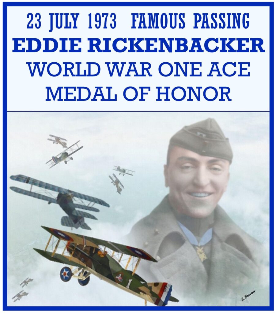 Edward Vernon Rickenbacker (October 8, 1890 â July 23, 1973) was an American fighter ace in World War I and