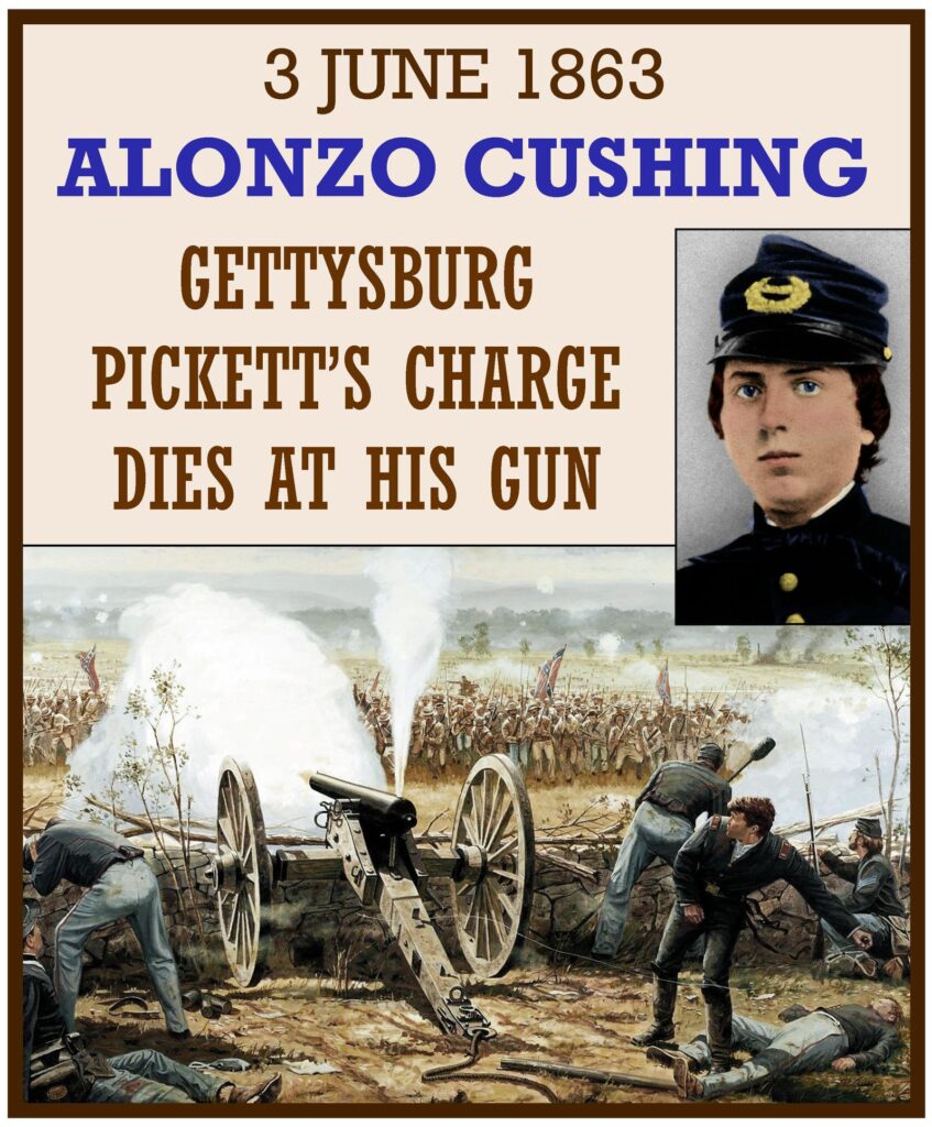 On the third day of the Battle of Gettysburg, July 3, 1863, Cushing commanded Battery A 4th U.S. Artillery, 126