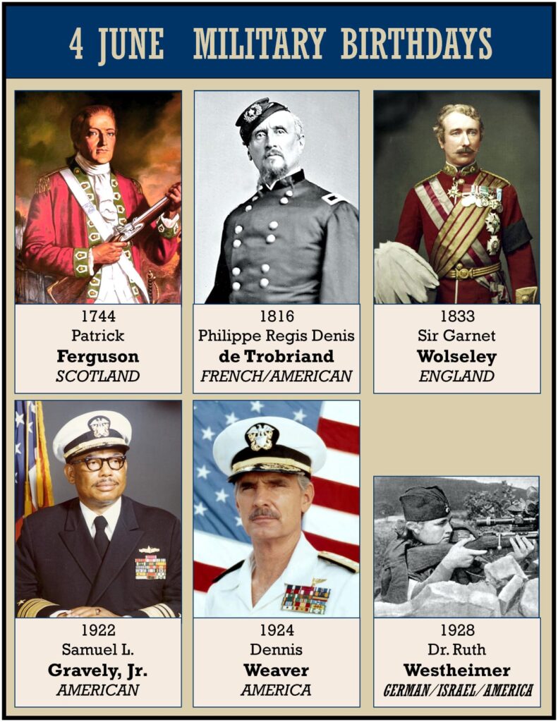 JUNE 4 1744 Patrick Ferguson (1744 â 7 October 1780) was a Scottish officer in the British Army, an early