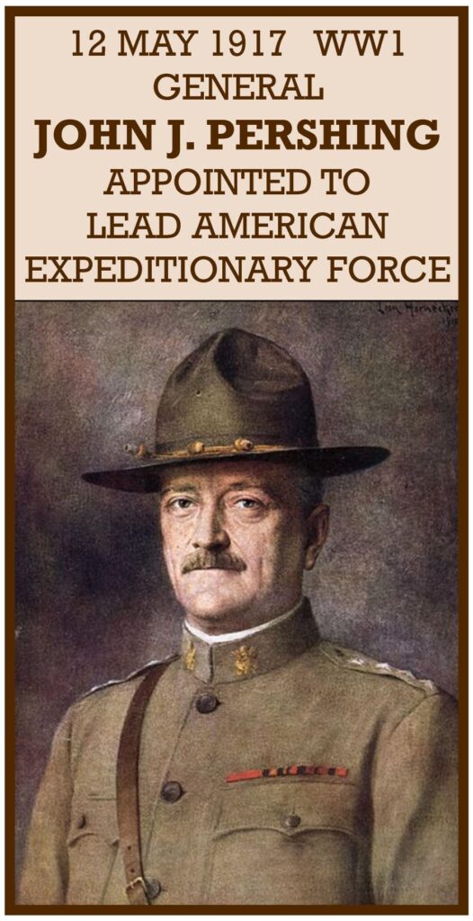 1917 â General John Pershing is appointed commander of the American Expeditionary Force, which is being formed to fight on
