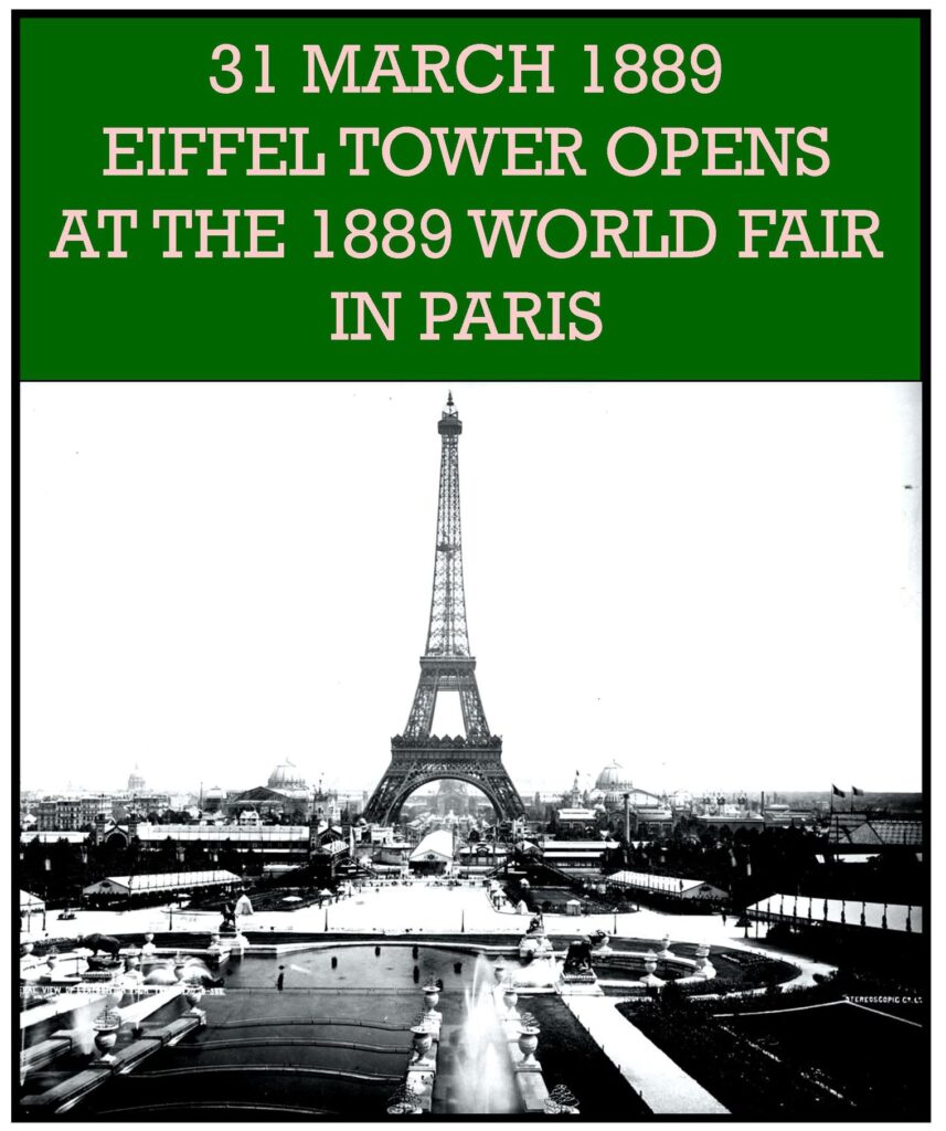 On March 31, 1889, the Eiffel Tower is dedicated in Paris in a ceremony presided over by Gustave Eiffel, the