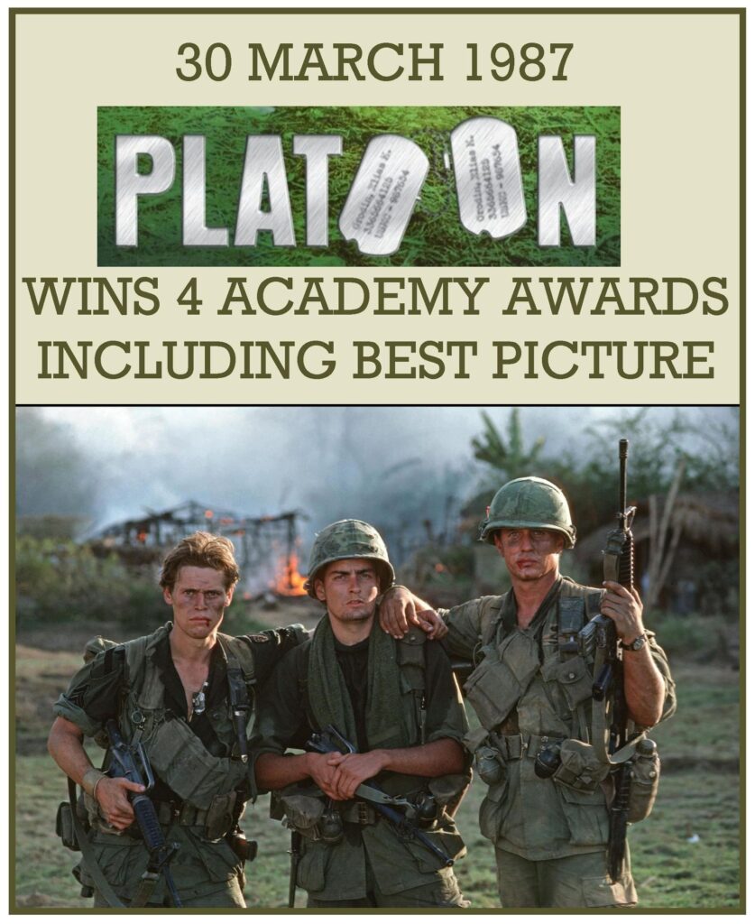 At the 1987 Academy Awards, Platoon was nominated for 8 awards and took away 4 Oscars, including the one for