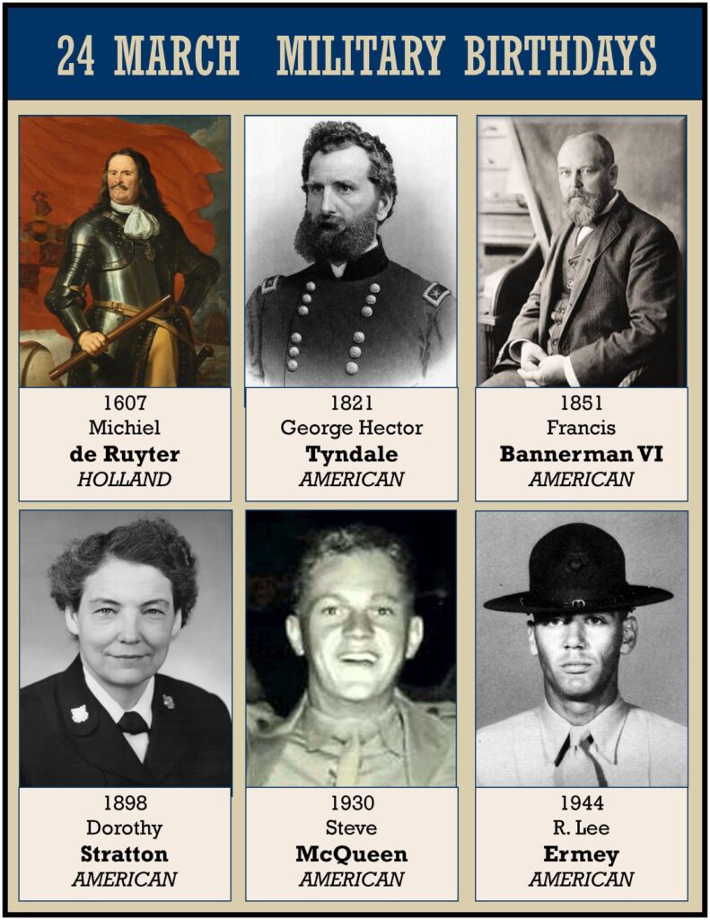 MARCH 24 1607 Michiel Adriaenszoon de Ruyter (24 March 1607 â 29 April 1676) was a Dutch admiral. Widely celebrated