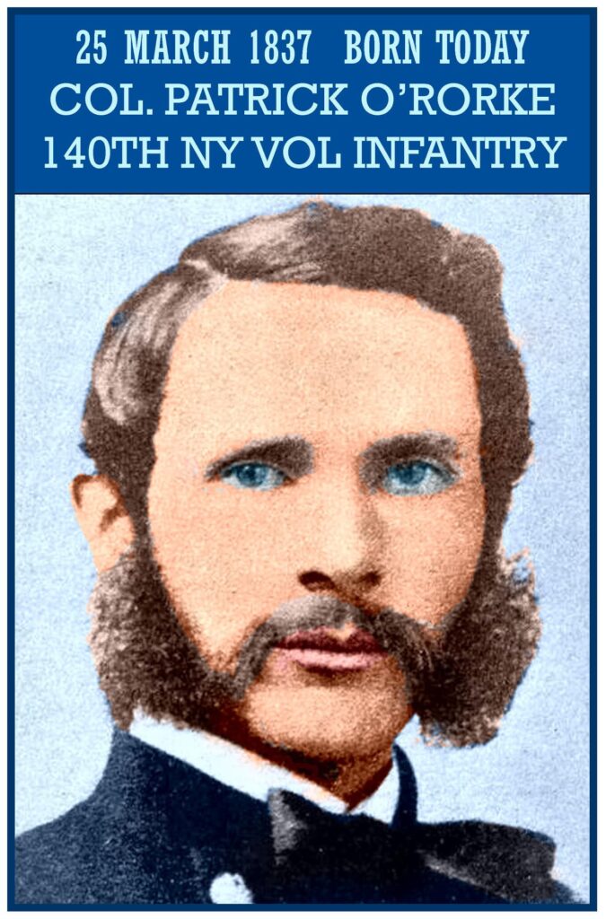 Patrick Henry “Paddy” O’Rorke (March 25, 1837 â July 2, 1863) was born in County Cavan, Ireland on March 25,
