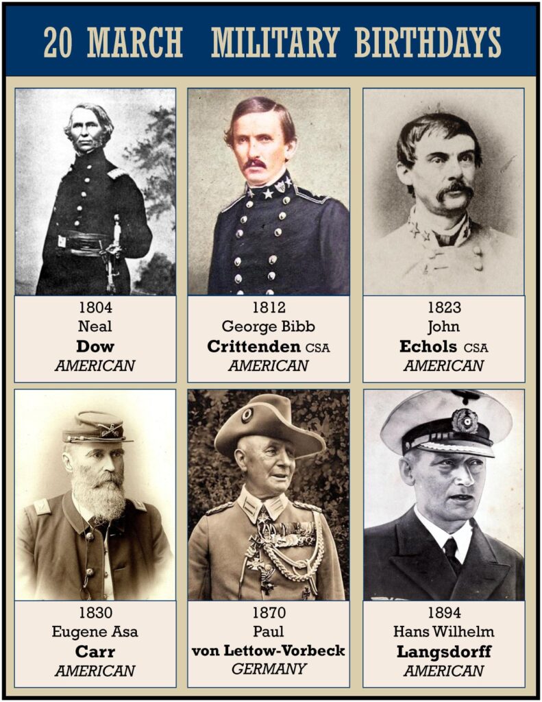 20 MARCH 1804 Neal Dow was an American Prohibition advocate and politician. Nicknamed the “Napoleon of Temperance” and the “Father