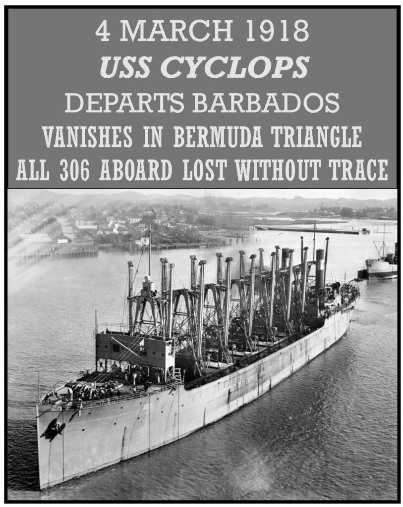 USS Cyclops (AC-4) (Length 542 ft.) was the second of four Proteus-class colliers built for the United States Navy several