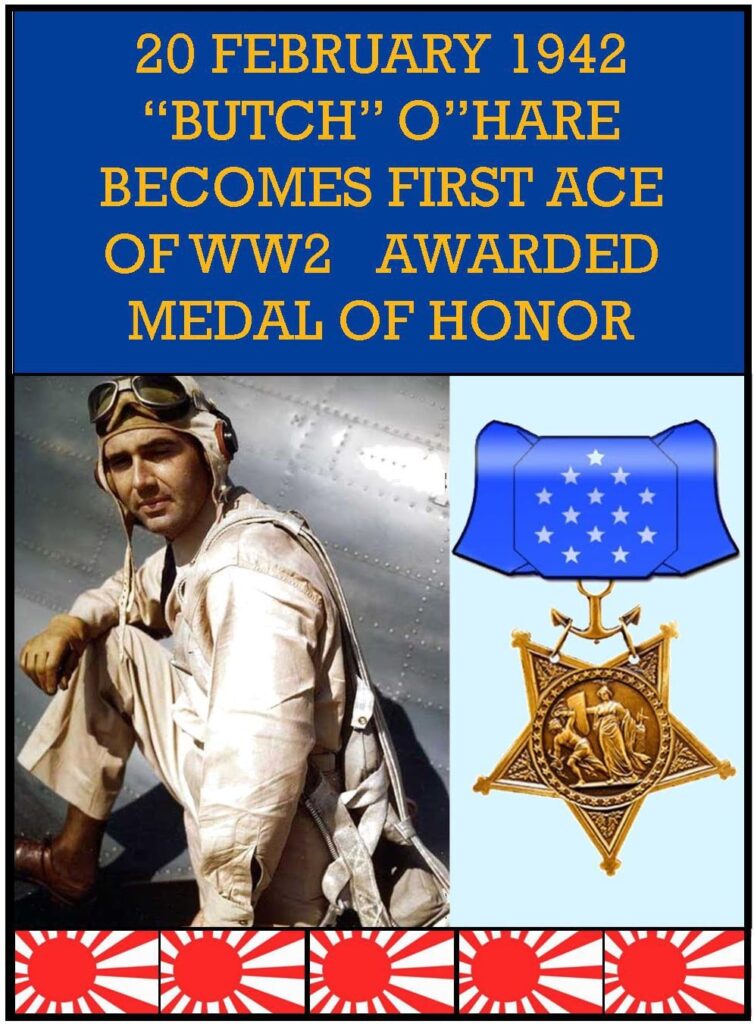 1942 â Lt. Edward OâHare takes off from the aircraft carrier Lexington in a raid against the Japanese position at