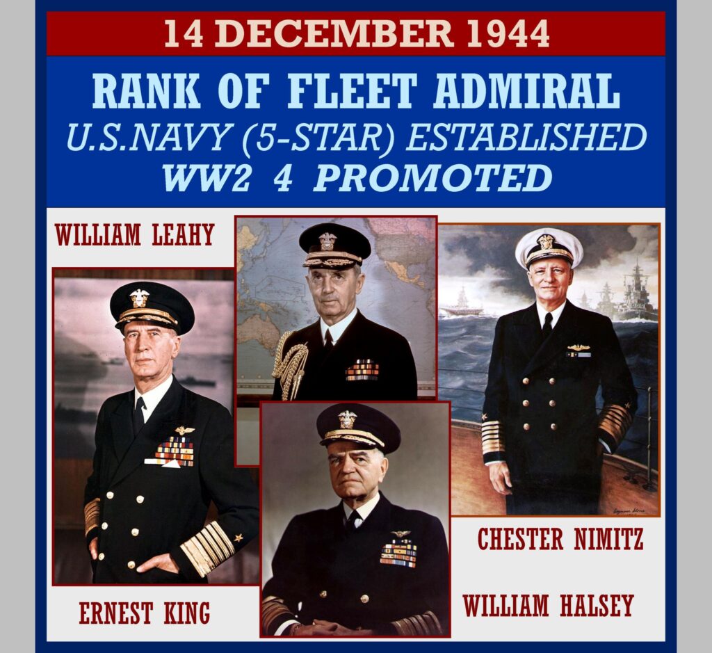 Rank of Fleet Admiral, U.S. Navy (five star admiral) is established. It is interesting to note that each of these