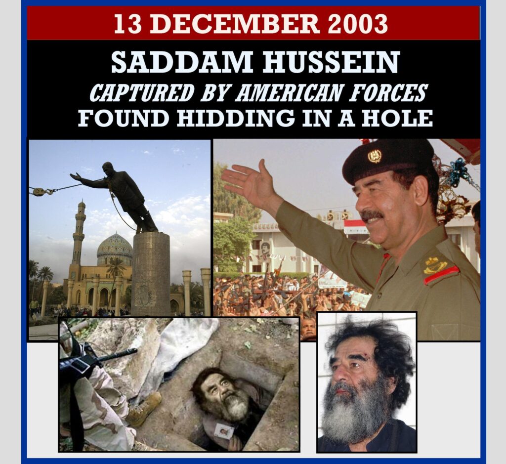 Saddam Hussein, the deposed president of Iraq, was captured by the United States military forces in the town of Ad-Dawr,