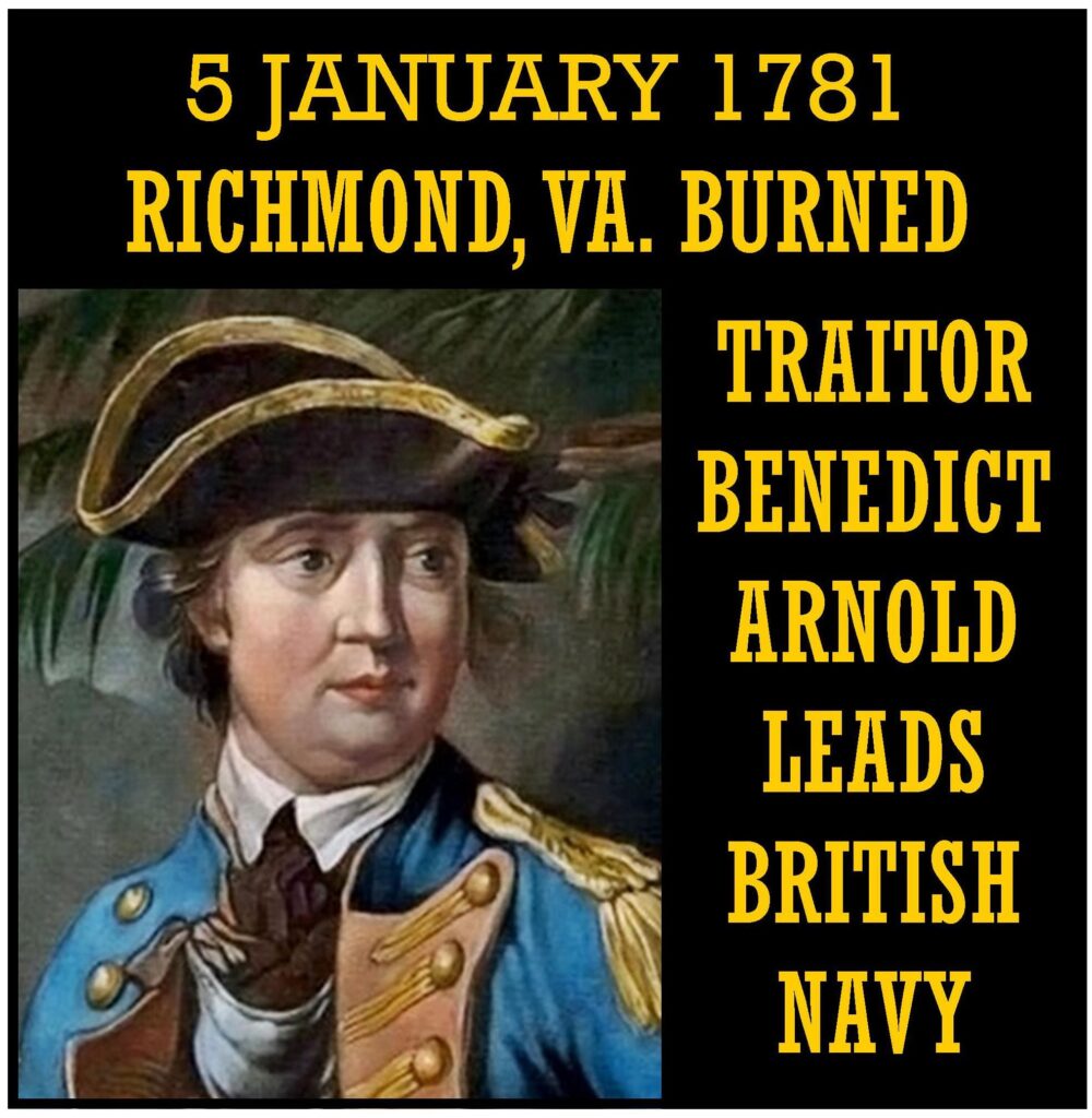 1781 â A British naval expedition led by Benedict Arnold burned Richmond, Va., causing Governor Thomas Jefferson to flee as