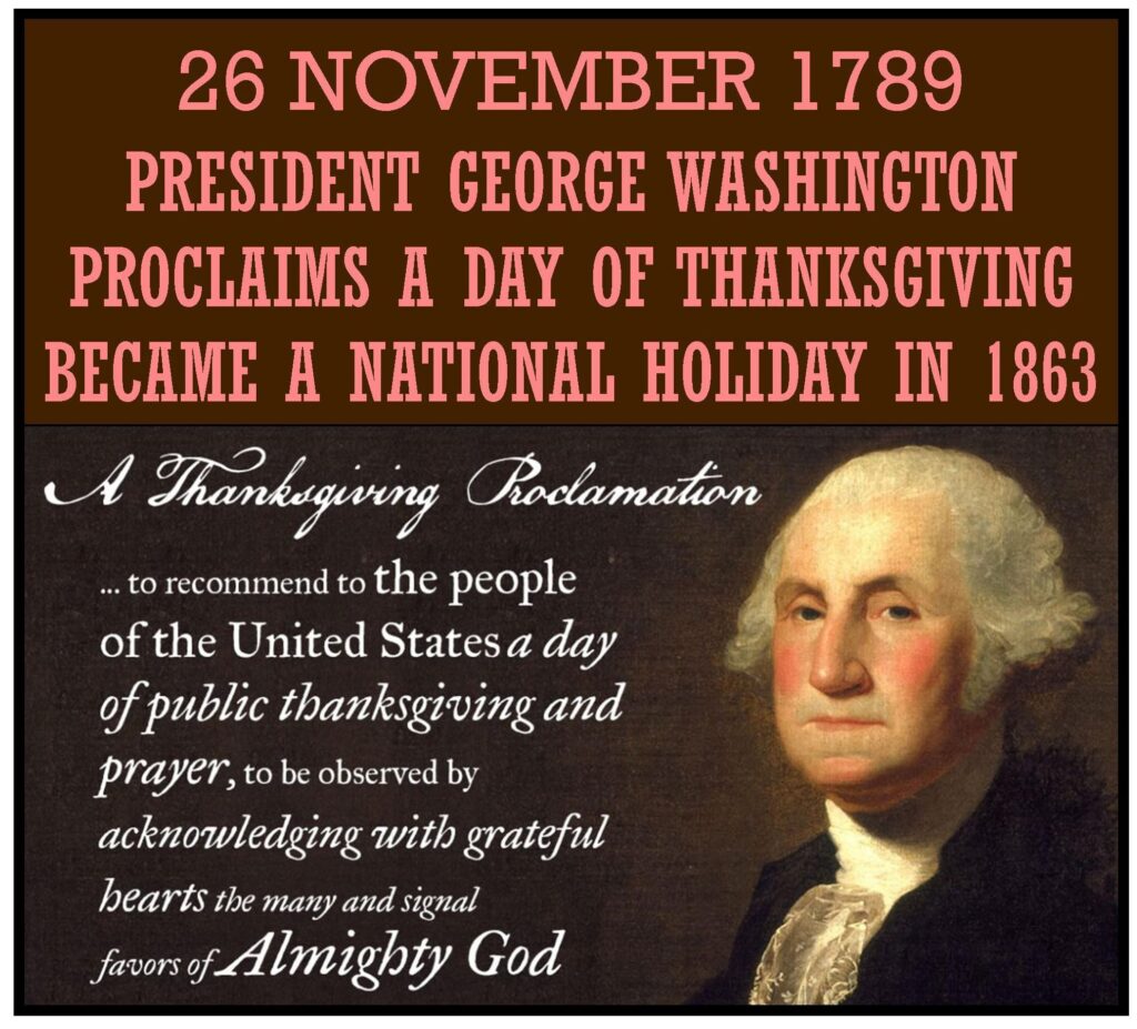 1789 â George Washington proclaimed this a National Thanksgiving Day in honor of the new Constitution. He made it clear