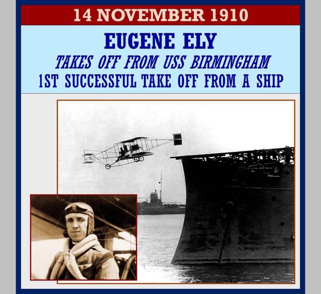 1910 â Civilian Eugene Ely, was the first to take off in an airplane from the deck of a ship, […]