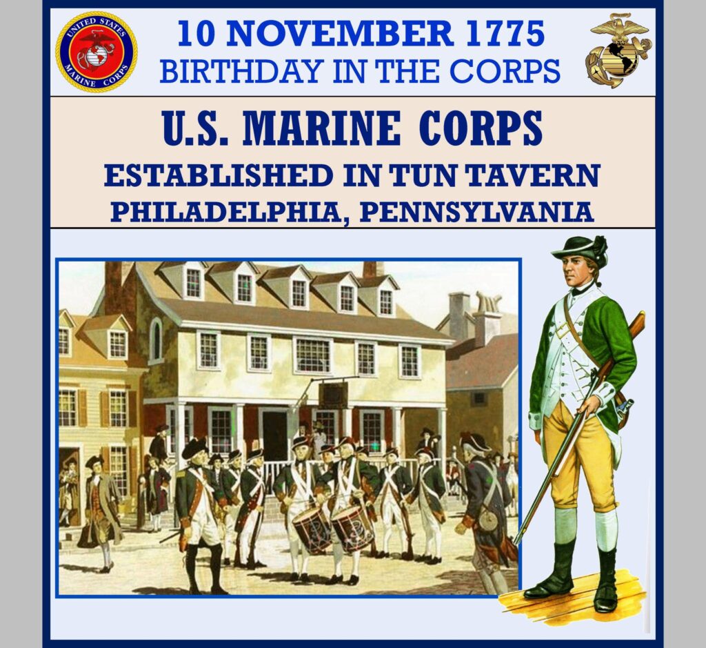 The official birthday of the United States Marine Corps is on 10 November 1775. That was the day when the