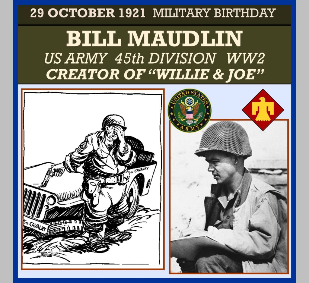 1921 â Bill Maudlin, American political cartoonist whose GI âWillieâ and âJoeâ characters appeared in Stars and Stripes newspapers, was