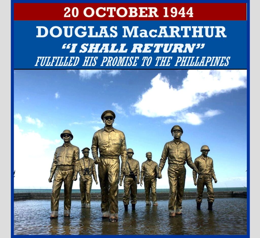 On October 20, 1944, a few hours after his troops landed, MacArthur waded ashore onto the Philippine island of Leyte.