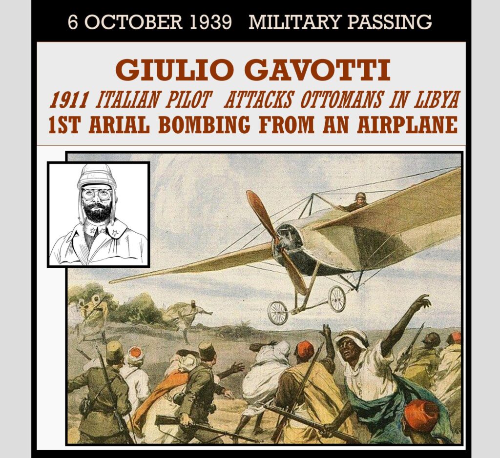 Giulio Gavotti (Died October 6, 1939 b. 1882) Italian pilot. In 1911, Giulio Gavotti conducted the first air raid from