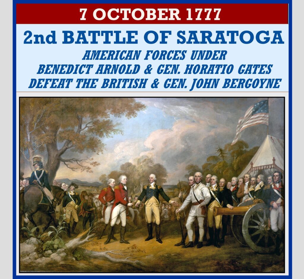 The Battles of Saratoga (September 19 and October 7, 1777) marked the climax of the Saratoga campaign, giving a decisive