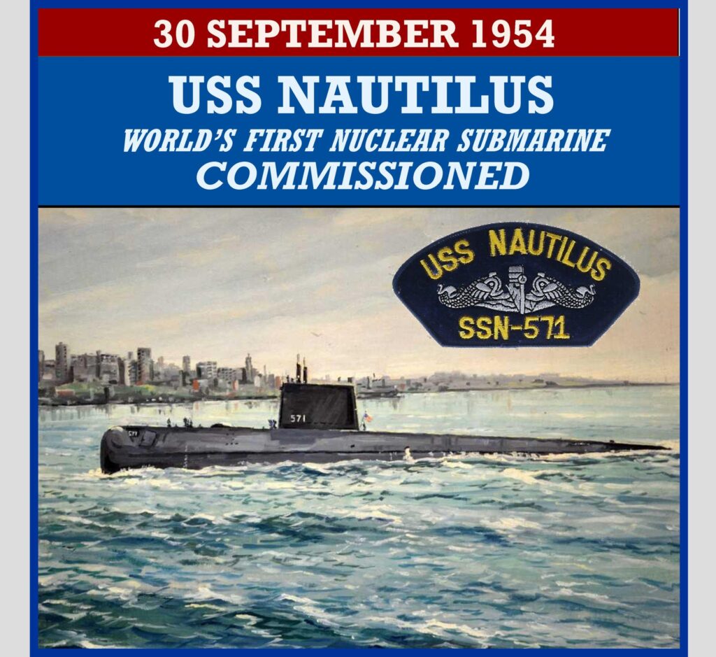 1954 â The USS Nautilus, the worldâs first nuclear submarine, is commissioned by the U.S. Navy. The Nautilus was constructed