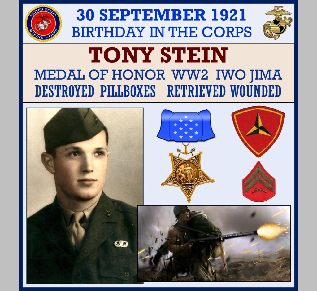 Tony Stein enlisted in the Marine Corps in 1942, becoming a Paramarine. Paramarines were an experiment to test the idea