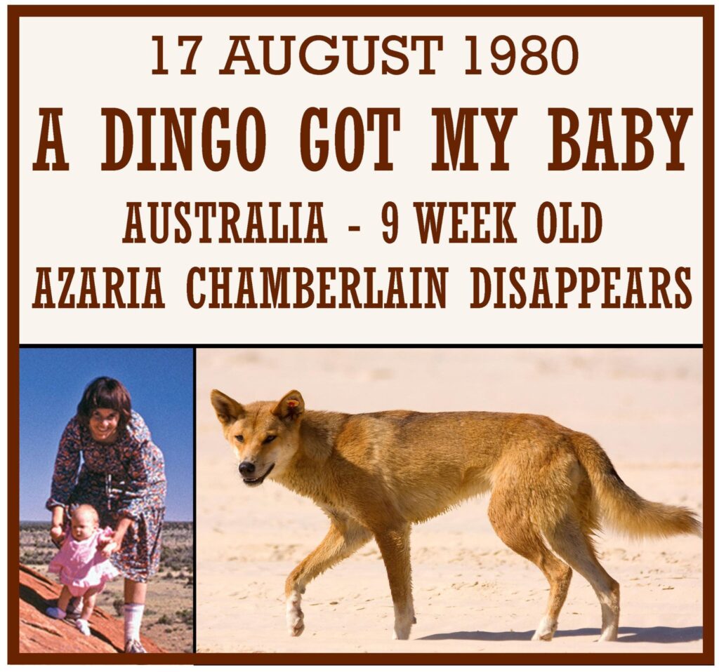 August 17, 1980 Nine-week-old Azaria Chamberlain disappears while she and her parents were tent camping in Australia. Her parents claimed