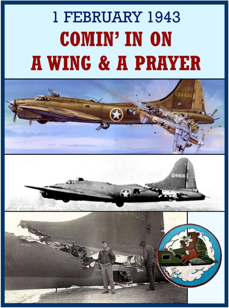 Comin’ in on a Wing and a Prayer February 1, 1943 The U.S. Air Force bomber All American’s tail is