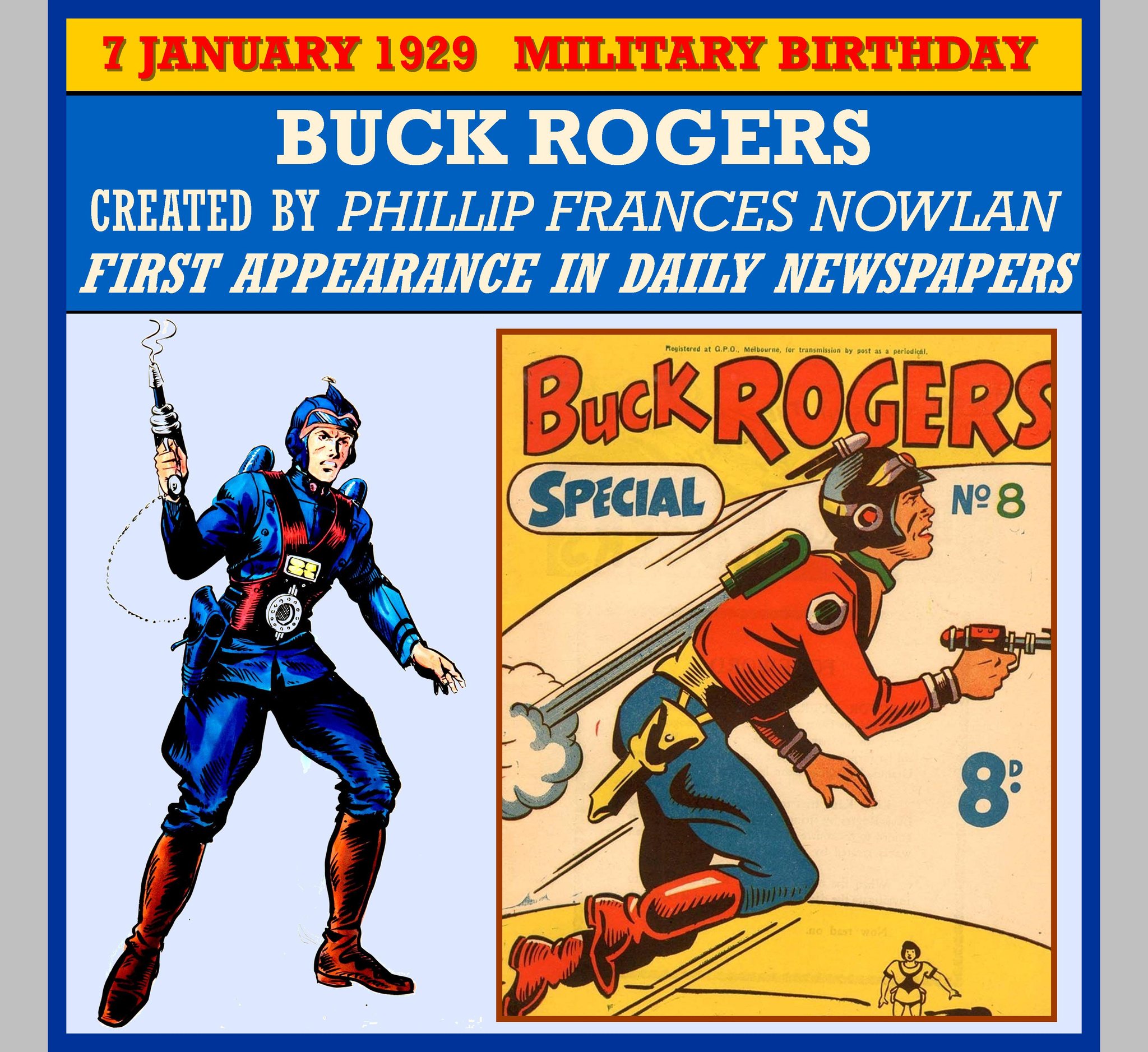 Buck Rogers is a science fiction adventure hero and feature comic strip created by Philip Francis Nowlan first appearing in daily US newspapers on January 7, 1929, and subsequently appearing in Sunday newspapers, international newspapers, books and multiple media with adaptations including radio in 1932, a serial film, a television series, and other formats.