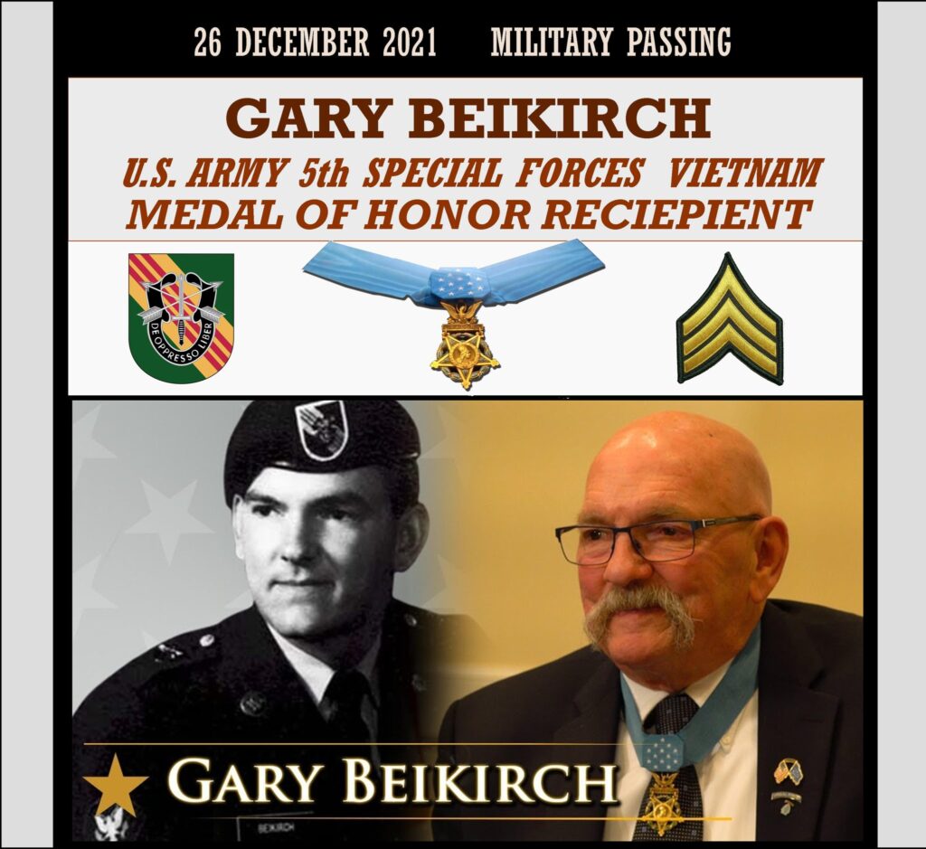 Gary Beikirch, 74, died Sunday 26 December 2021 following a battle with pancreatic cancer. Beikirch served as a green beret