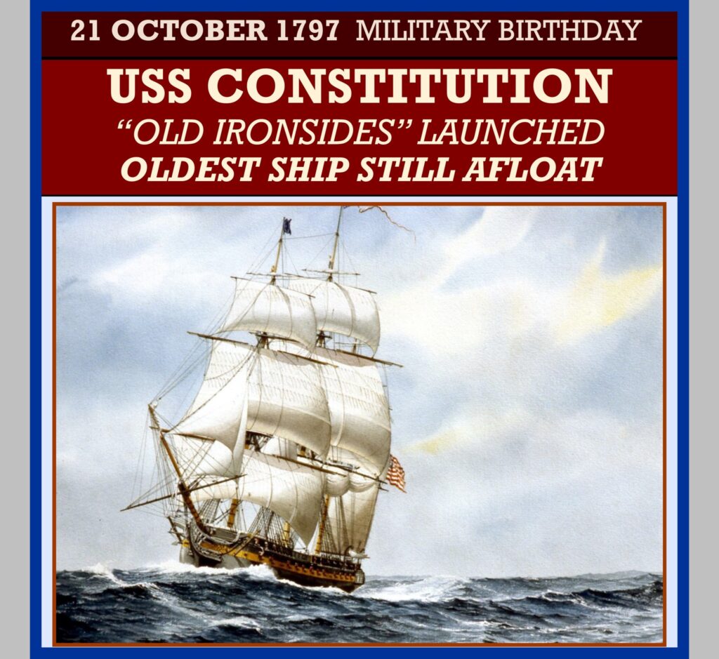 1797 â The 44-gun 204-foot U.S. Navy frigate USS Constitution, also known as Old Ironsides, was launched in Bostonâs harbor.