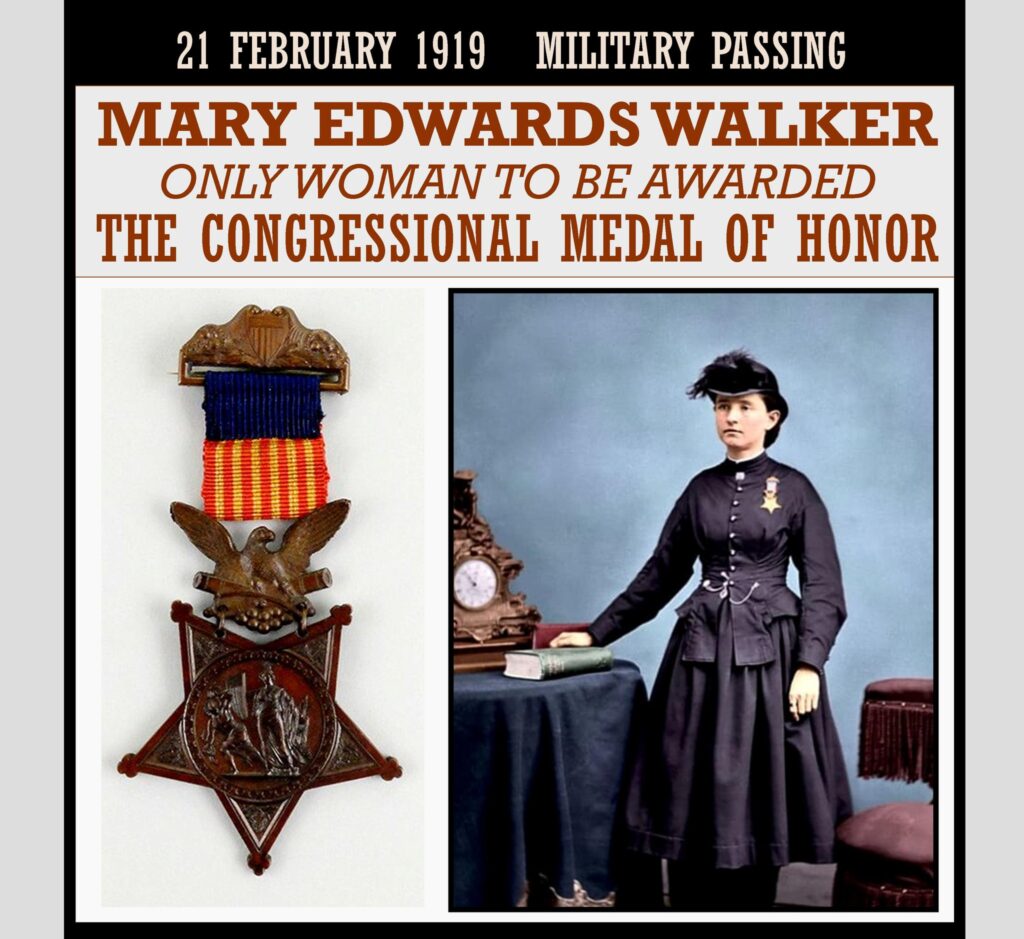 Mary Edwards Walker (November 26, 1832 â February 21, 1919), commonly referred to as Dr. Mary Walker, was an American