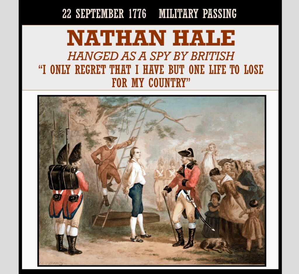 Nathan Hale (June 6, 1755 â September 22, 1776) was an American Patriot, soldier and spy for the Continental Army […]