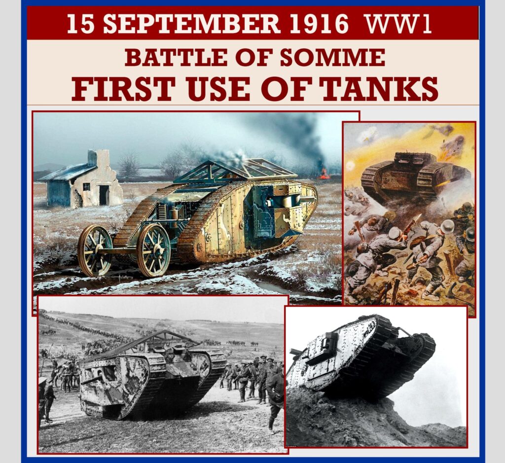 The first use of tanks on the battlefield was the use of British Mark I tanks at the Battle of